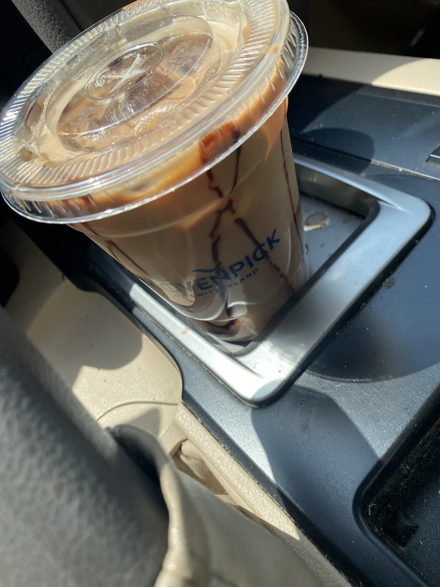 Caffeinated chocolate treat made with iced cold milk, chocolate sauce and espresso.